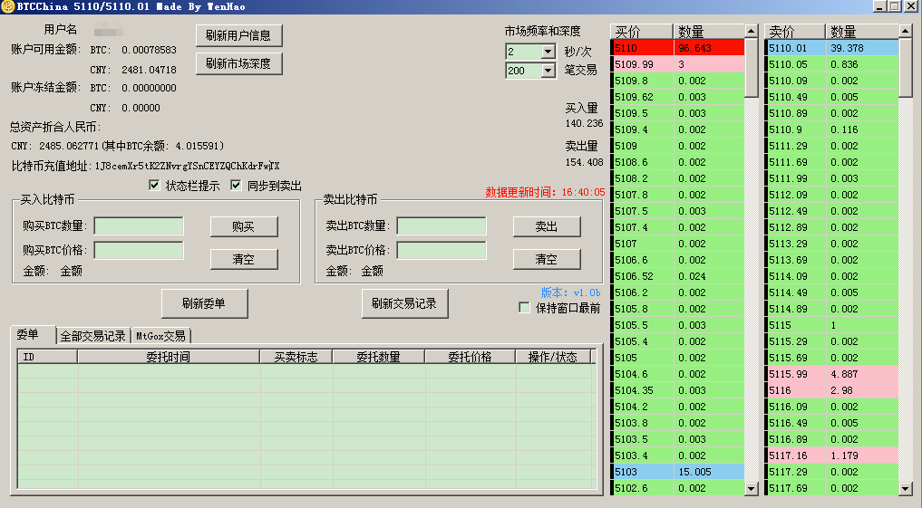 最近比特币很火的样子,写个程序快速炒个短线~ 界面如下: