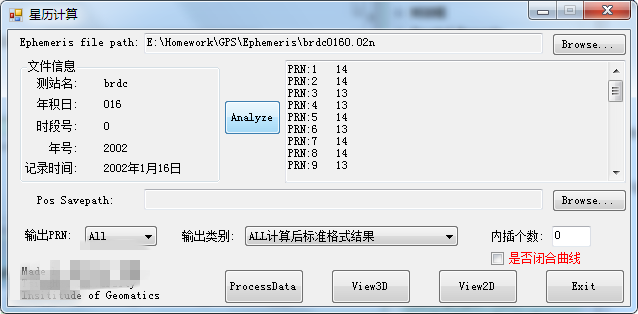 最后就是计算XYZ和大地坐标系,大地坐标系上次作业已经搞定,这次就看看地固系里的了。