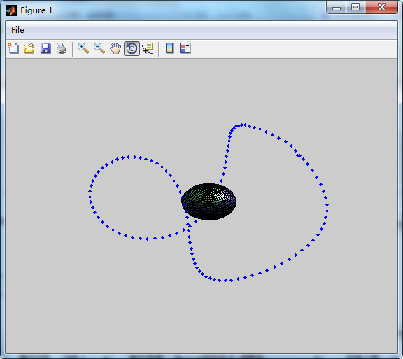 (1) A 3-D plot of the trajectories of the motions of the satellites in