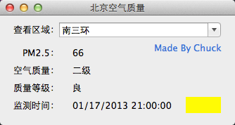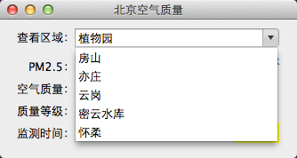 最近PM2.5很火爆,闲着无事自己做个看看。下面是界面~