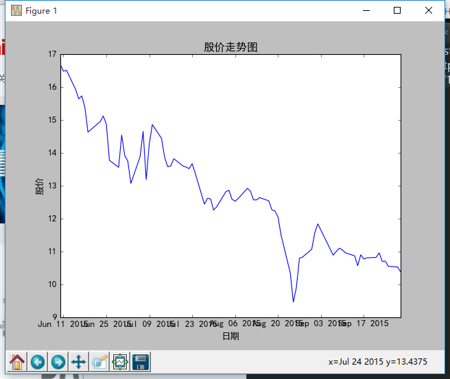 首先来个简单的,获取深圳机场000089的2015-06-10到2015-09-29的数据吧,并且图形显示出来看看。