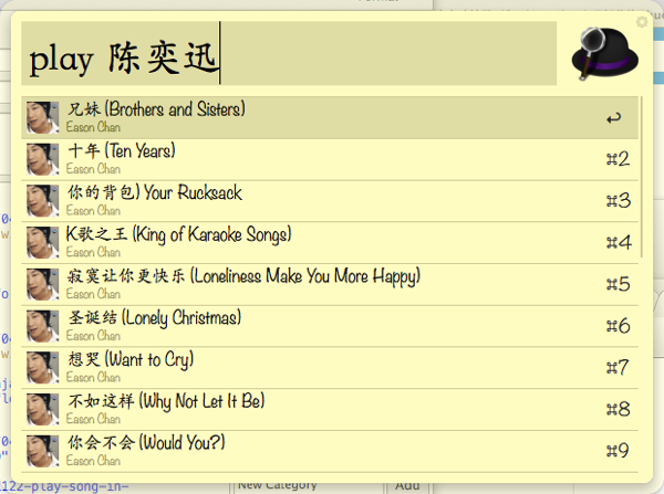 大爱的一个 Workflows,可以直接通过 Alfred 搜索 iTunes 的曲库,并播放或定位到当前歌曲,iTunes 基本可以在后台不用出来了。