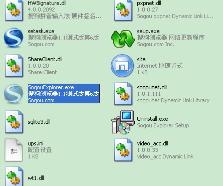 搜狗浏览器将自己的主进程隐藏了,要用显示所有隐藏文件才能看见。(有点无聊的做法...囧)