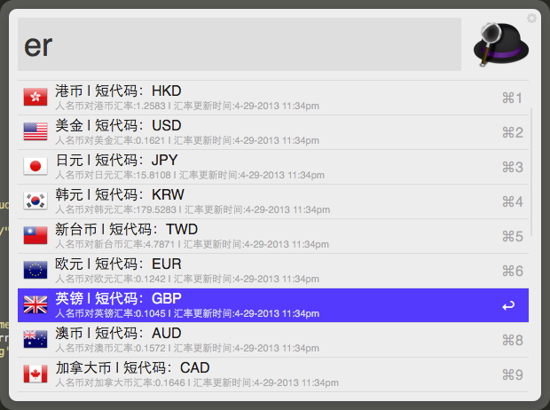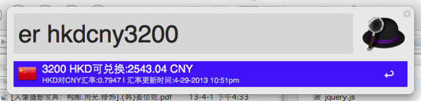 今天闲来无事,发现每次查汇率要打开网页,作为懒人一族,想直接用Mac上的Alfred实现啊~查阅了下Google,发现没有针对人民币做的…还是自己来做一个好了~