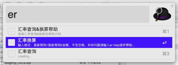 命令为er,有3种模式,er为查询所有汇率,er加参数查询制定币种汇率,er help跳到本页帮助文档。