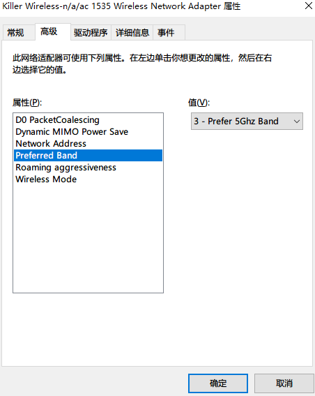 在这个WLAN----右键----属性-----配置----高级----在“属性”列表中找到“首选频带”